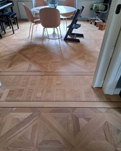 De vloer wordt met vakmanschap en uiterste nauwkeurigheid uitgetand, zodat oud en nieuw in elkaar overloopt. Vervolgens wordt de totale vloer geschuurd en afgewerkt naar keuze. En het resultaat mag er zijn.